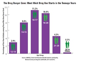Από μελέτες φαίνεται, όπως άλλωστε ήταν αναμενόμενο, ότι η εφηβική ηλικία είναι η πιο ευάλωτη στη χρήση ναρκωτικών